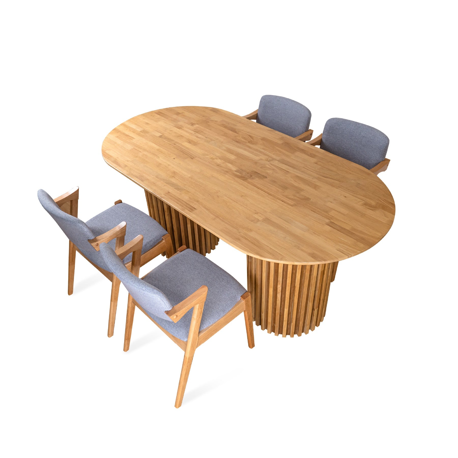 Nest is a solid wood table featuring a sleek silhouette and uniquely designed wooden stripe legs—bringing modern character and artisanal detail to your dining space.