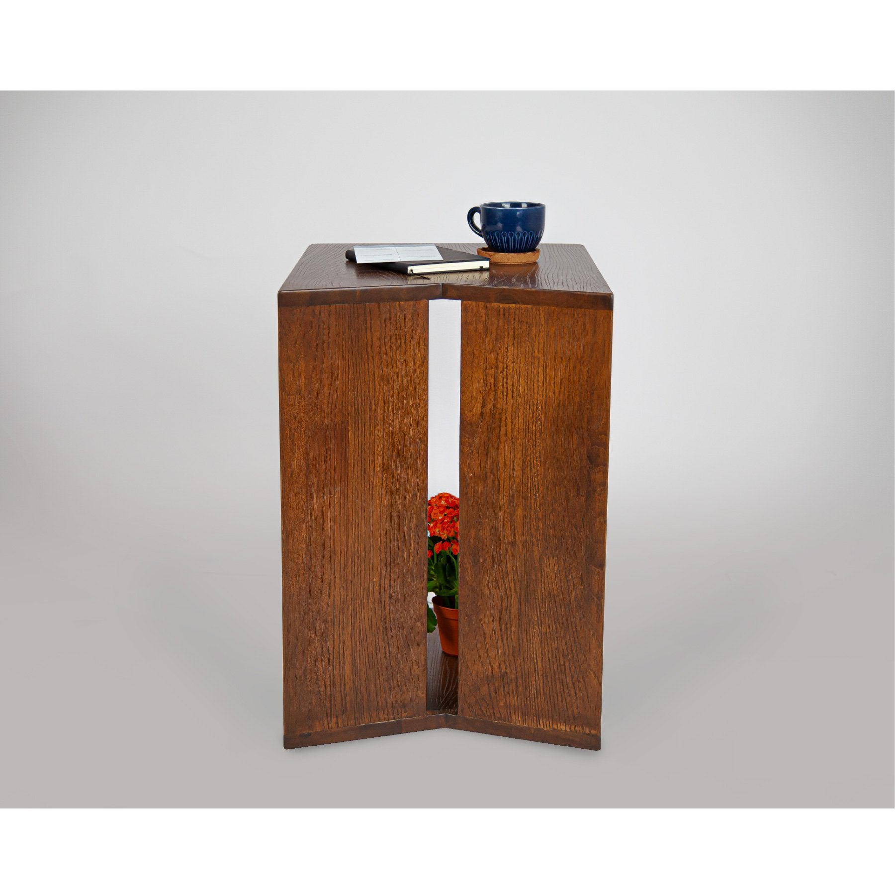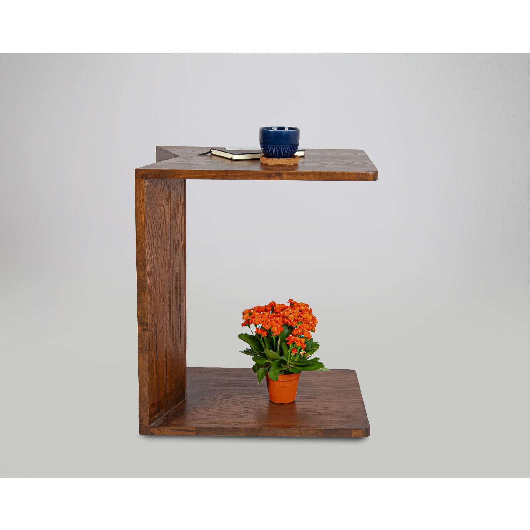 Tizzo is a solid wood C-shaped side table featuring a bold arrow-inspired design—merging striking form with everyday function for a standout piece that slides seamlessly into modern living spaces.